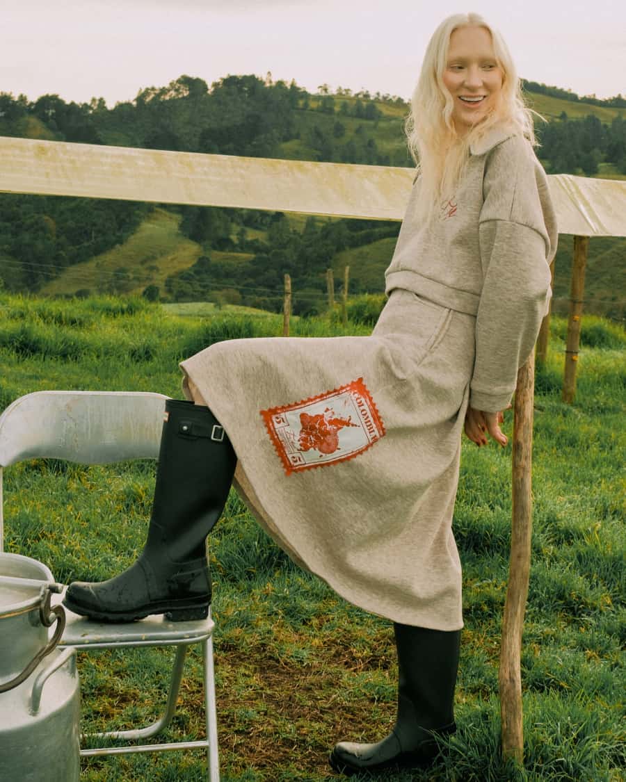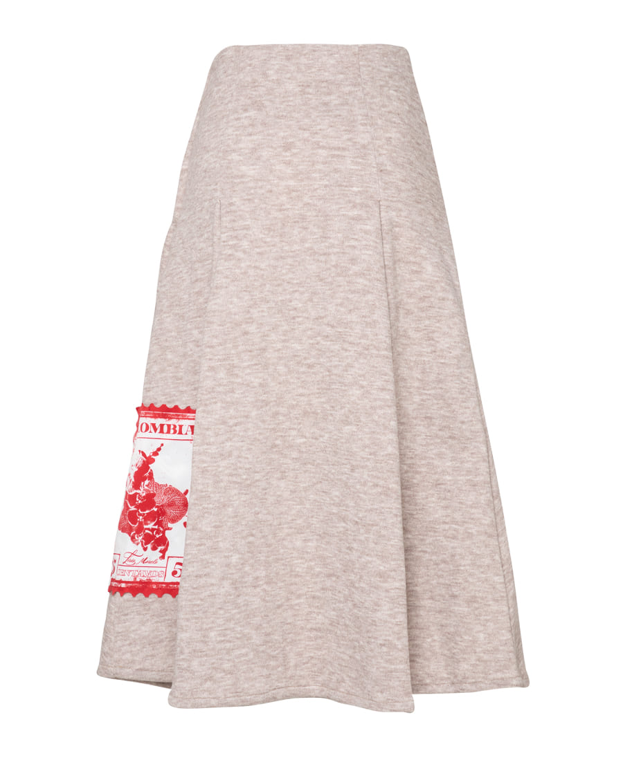 Midi skirt to elevate a comfortable look with a touch of sophistication. Front pockets and side zipper for greater comfort. Stamp detail on the side inspired by Colombian orchids.
